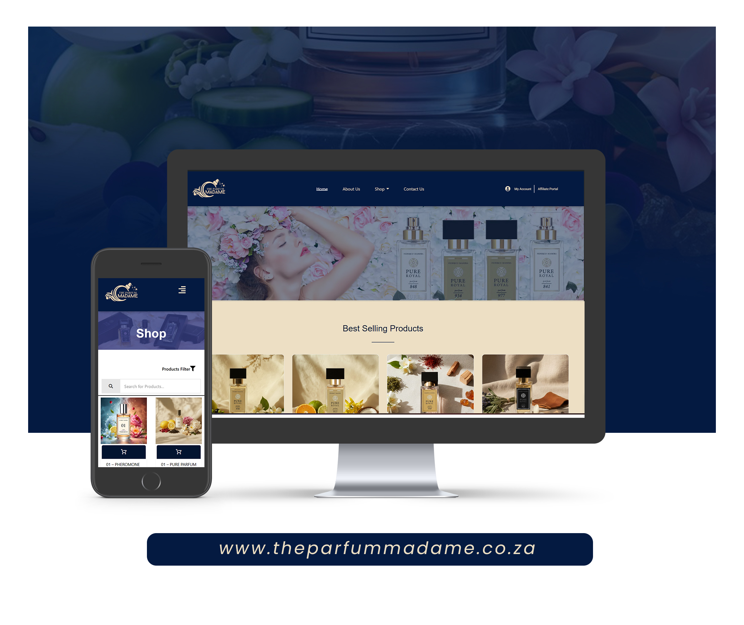 A refined e-commerce website crafted for The Parfum Madame, a premium South African perfume brand offering luxurious, high-quality fragrances for women, men, and unisex collections. The site showcases elegant product categorisation, rich visual presentation, and seamless navigation to highlight the brand’s diverse range of scents — from floral and oriental to bold, stimulating aromas — enabling customers to explore and shop fragrances with confidence.